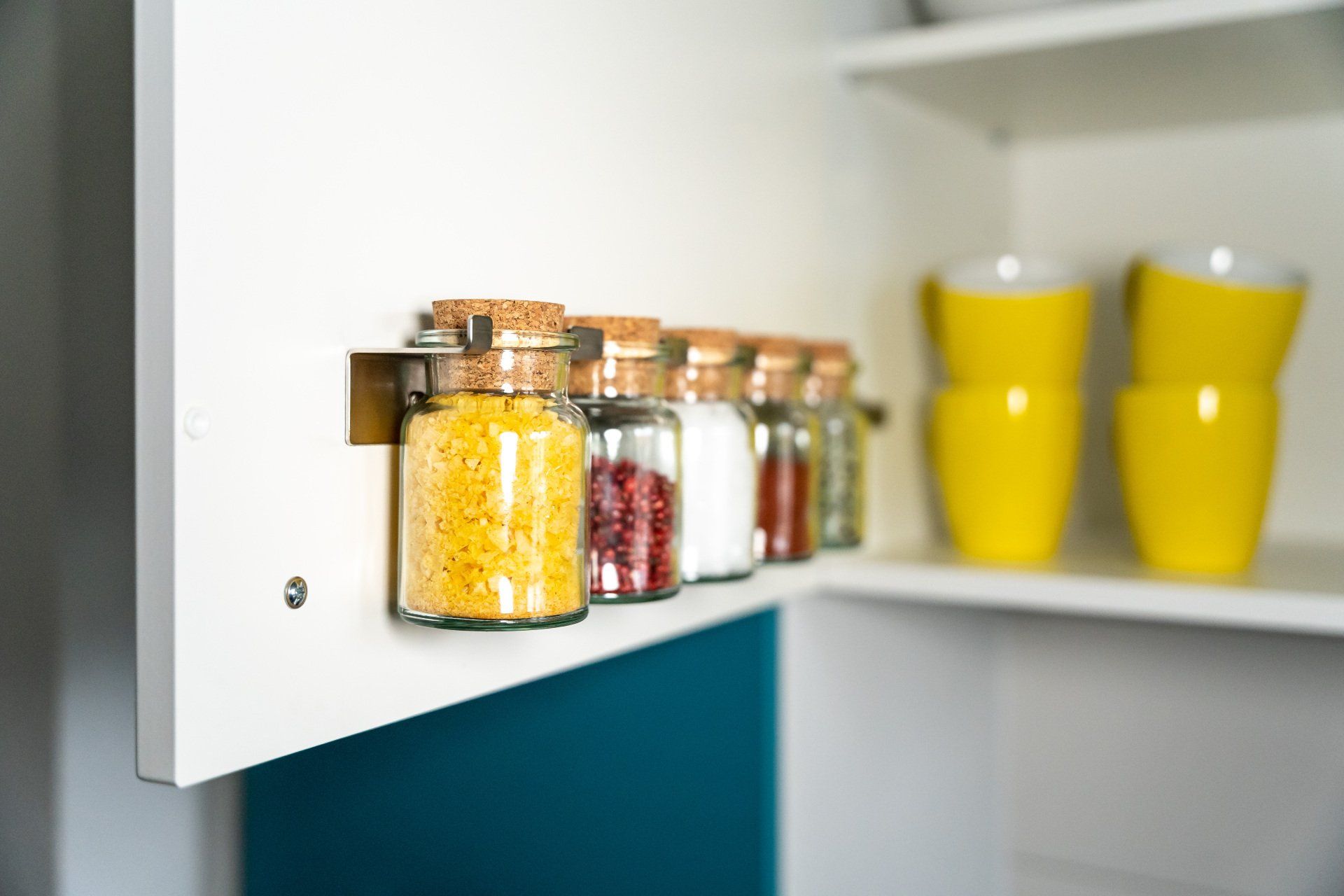 Deine Gewürze (bspw. Ankerkraut Gewürze) sind dabei immer sichtbar aufgeräumt und stetig griffbereit, dafür rückt das HängHin-Regal gerne in den Hintergrund.